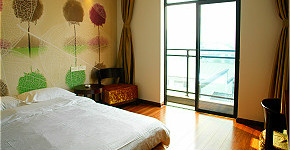 温馨干净的居室环境,暖黄色的主调,宽敞的空间,为爸爸、妈妈与孩子提供互动与交流的空间,人性化的摆设,贴心的服务,让您感受到家的温暖。房内有一张1.8米的床和一张1.2米的床。