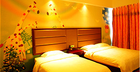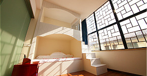 色彩鲜明的装饰风格,独特的上下铺设计,让你重拾学生时代的青春记忆,配以32寸液晶电视,是同学聚会、团体旅行的居住的不二选择。