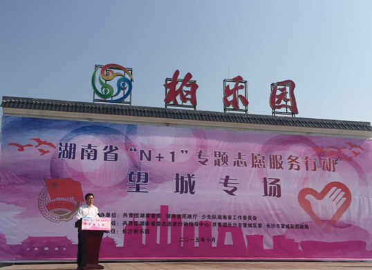 金秋十月,暖阳普照。今年10月17日是第二个“全国扶贫日”,也是第23个国际消除贫困日。在团省委的统一安排下,当天上午,湖南省“N+1”专题志愿服务行动望城专场活动在长沙柏乐园成功举行。团省委副书记、省少工委主任廖良辉,团省委志愿者行动指导中心一行,区委副书记、区长孔玉成出席此次活动。湖南省“N+1”爱心人士、爱心企业代表、望城区雷锋慈善会负责人等百余人参加此次活动。中国银行麓谷支行团委在中国银行湖南省分行机关团委带领下受邀参加此次活动,并带着全行员工的爱心款项进行现场捐赠。